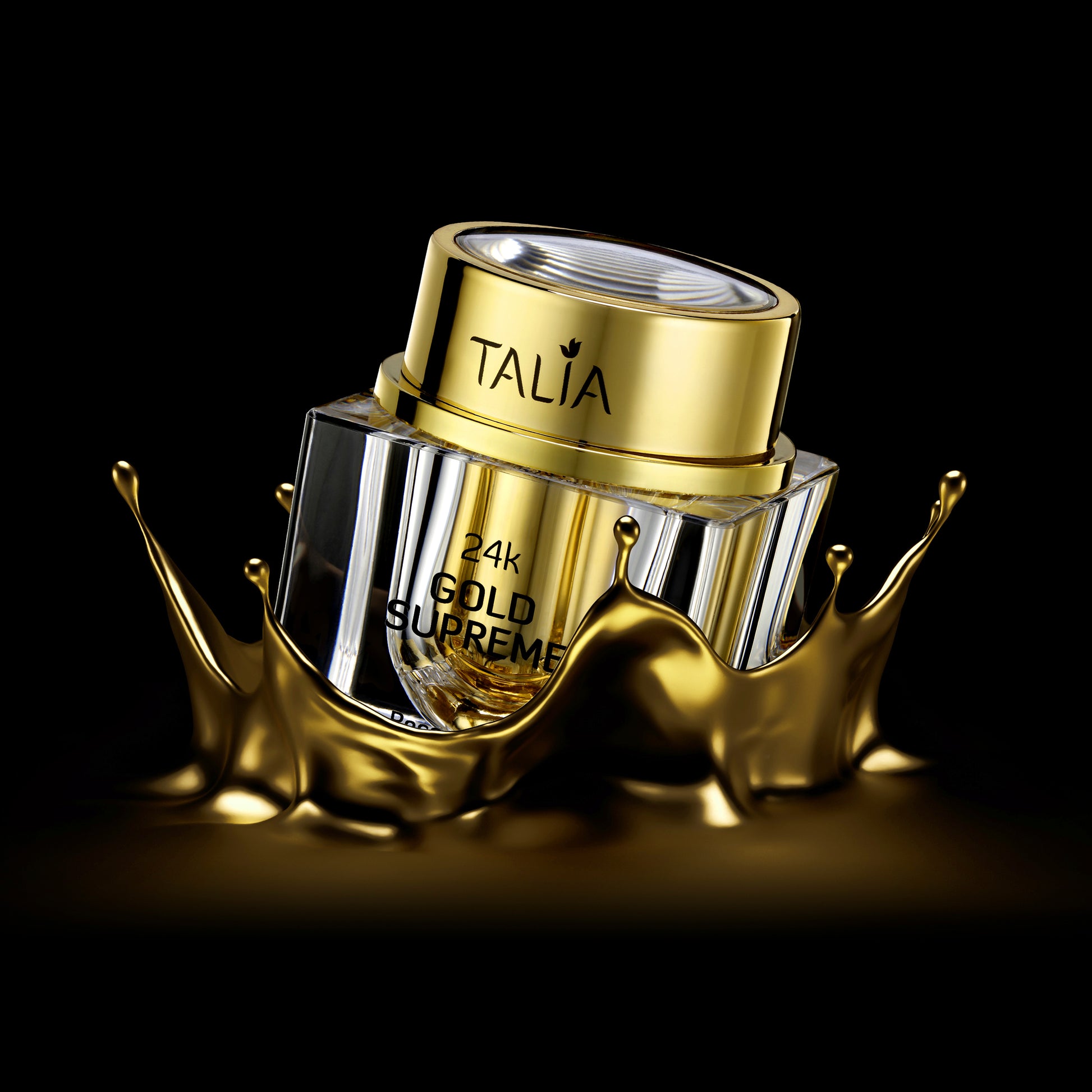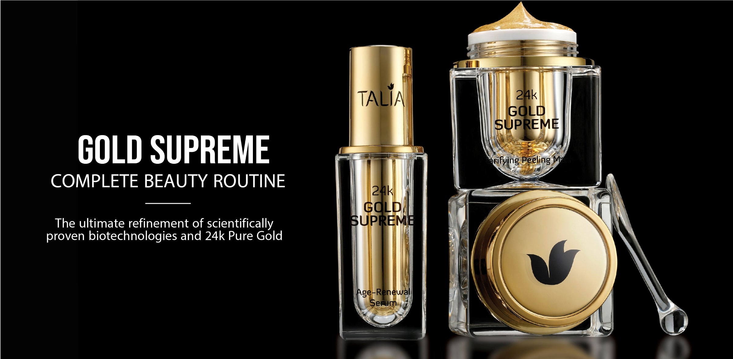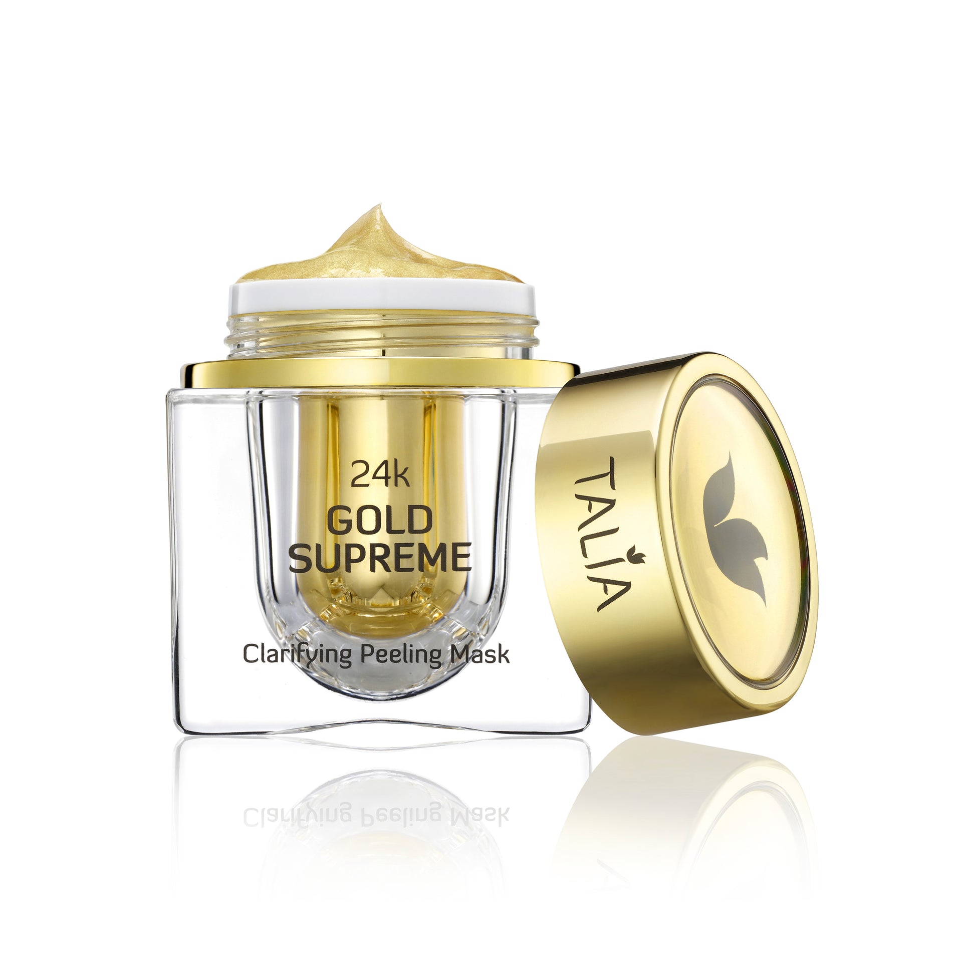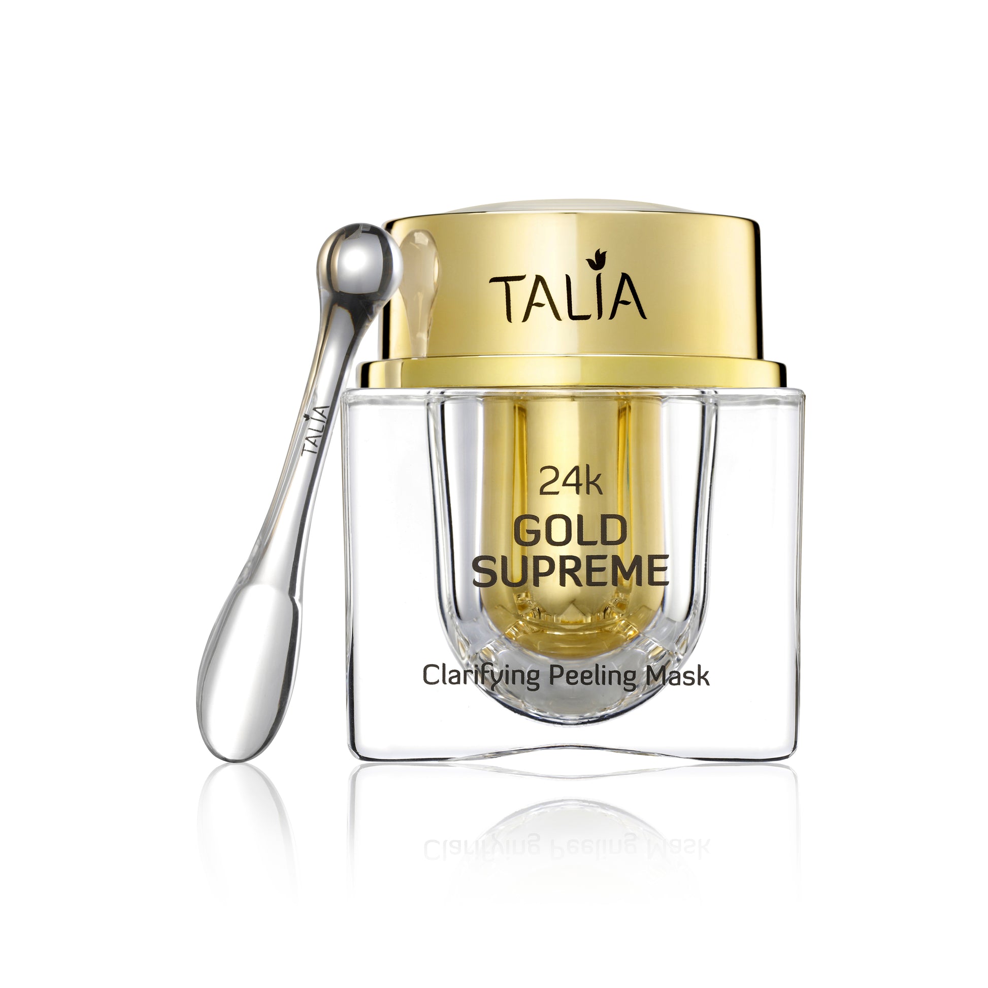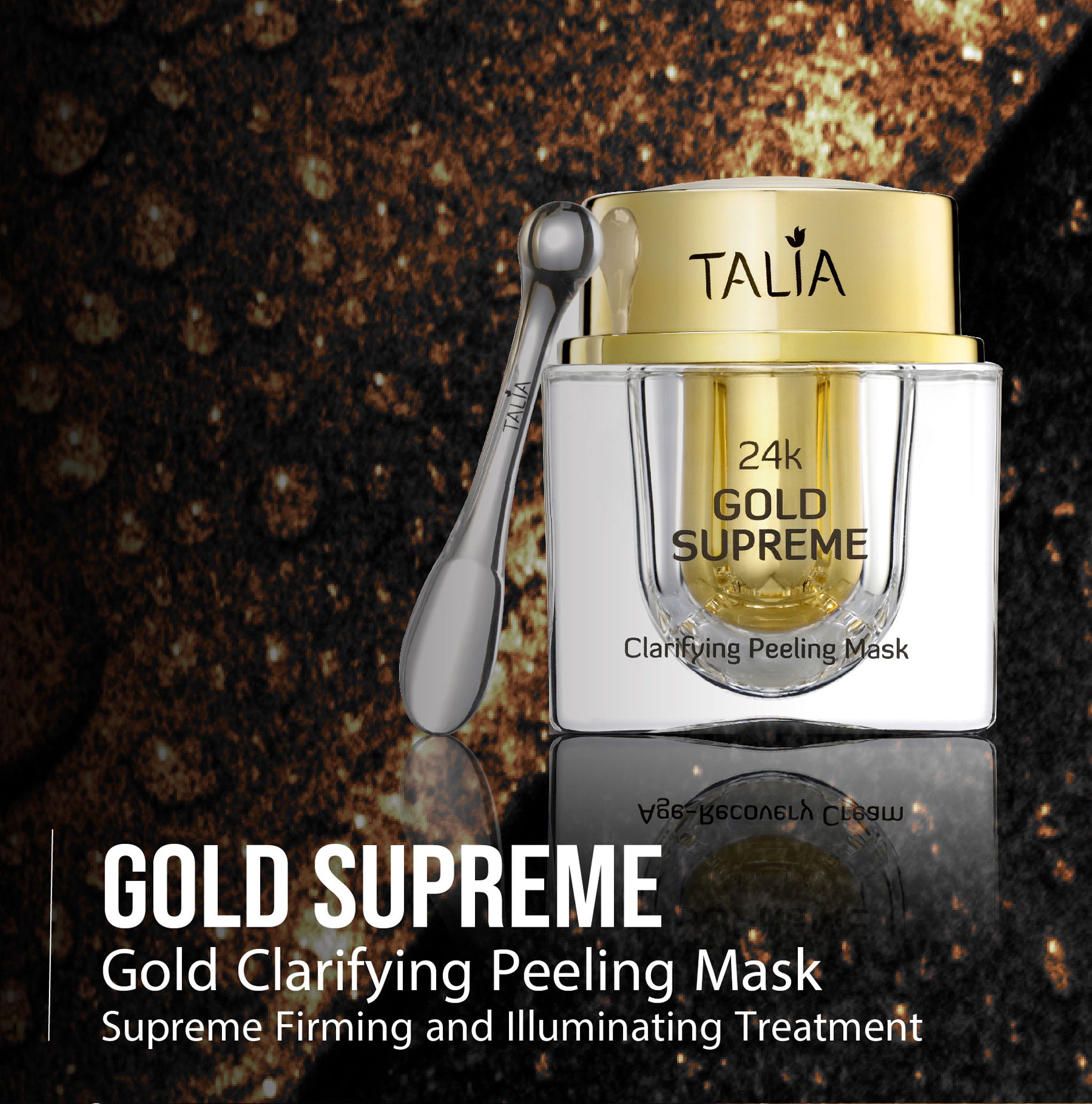 The ultimate 24K Gold illuminating peeling mask featuring Talia's G-CleanTec complex boots provides clarity and delivers noticeable glowing-looking skin.