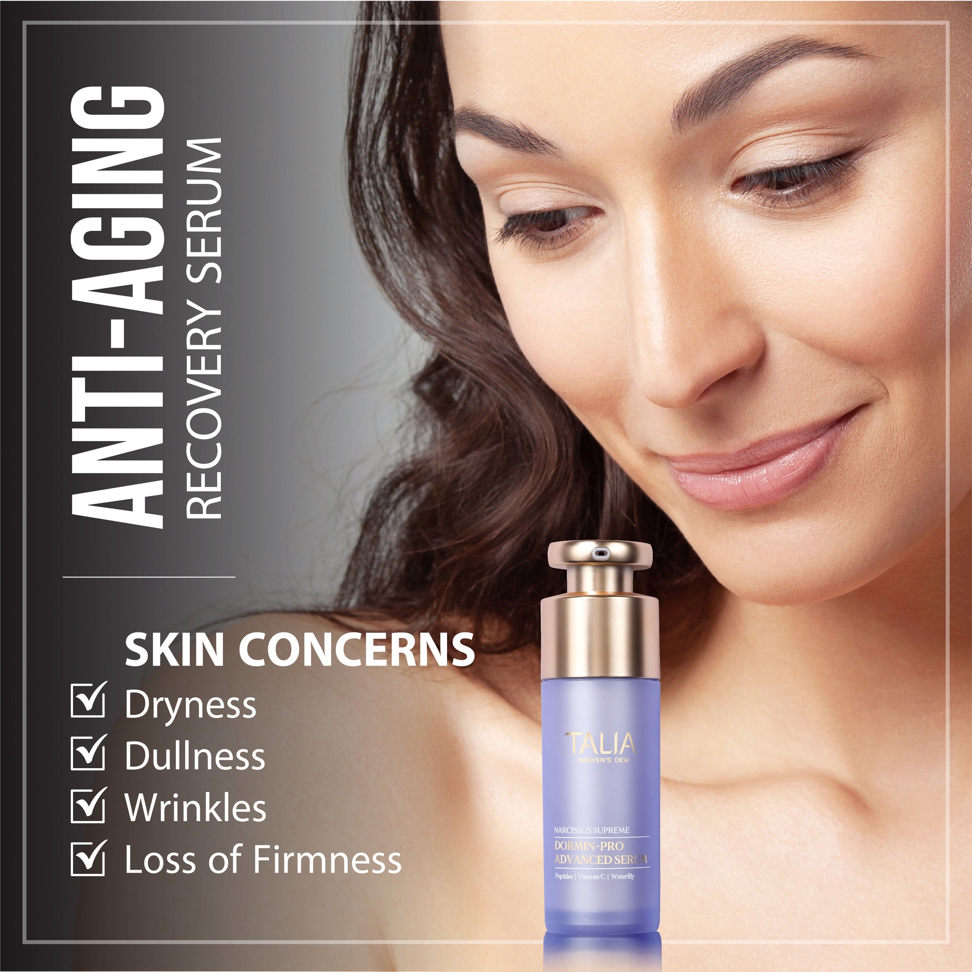 Advanced skin-smoothing recovery serum powered by a unique complex of potent peptides, Hyaluronic acid, and Narcissus bulb extracts to address multiple signs of aging, visibly plump, firm, and reduce the look of fine lines & wrinkles.