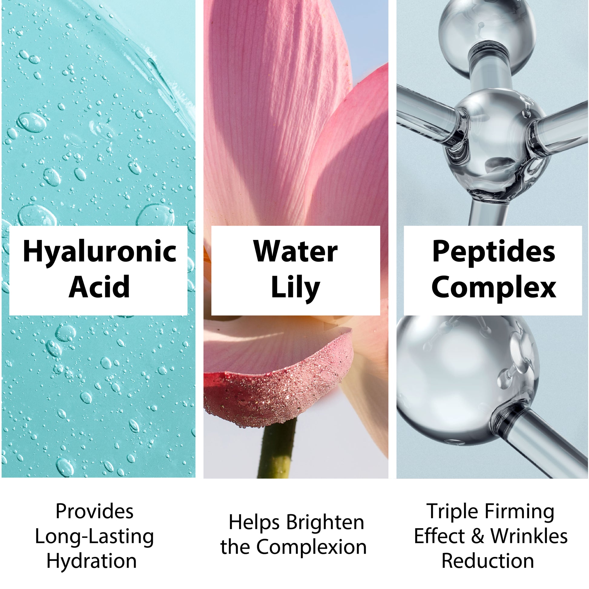 • Peptides Complex: Firms skin and visibly reduces the look of fine lines and wrinkles.