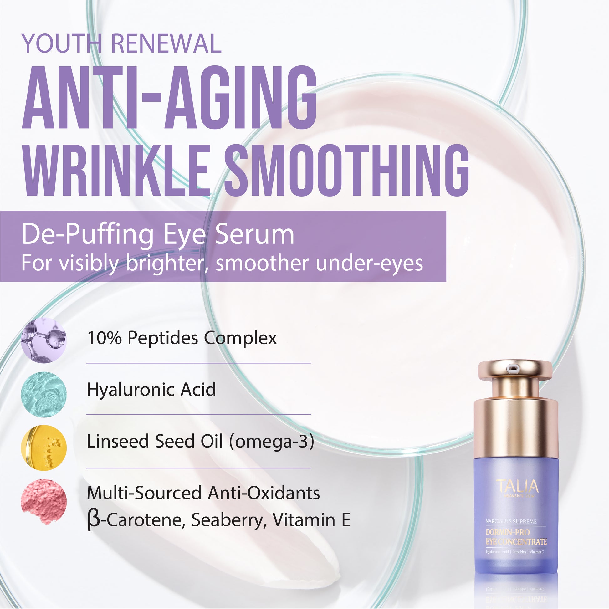Powerful anti-aging eye serum that scientifically tightens and tones the delicate skin around the eyes, minimizes puffiness, and dramatically reduces wrinkles.