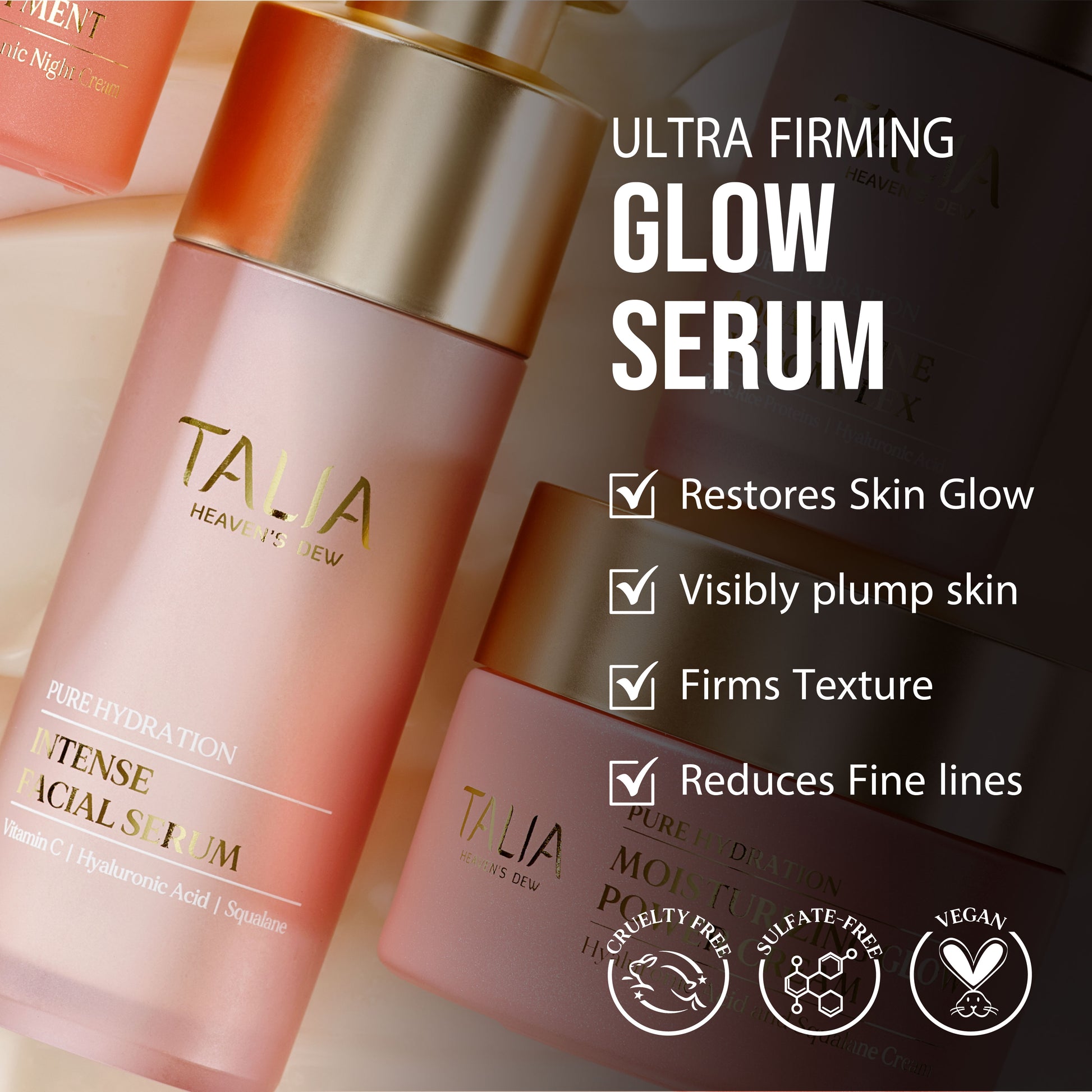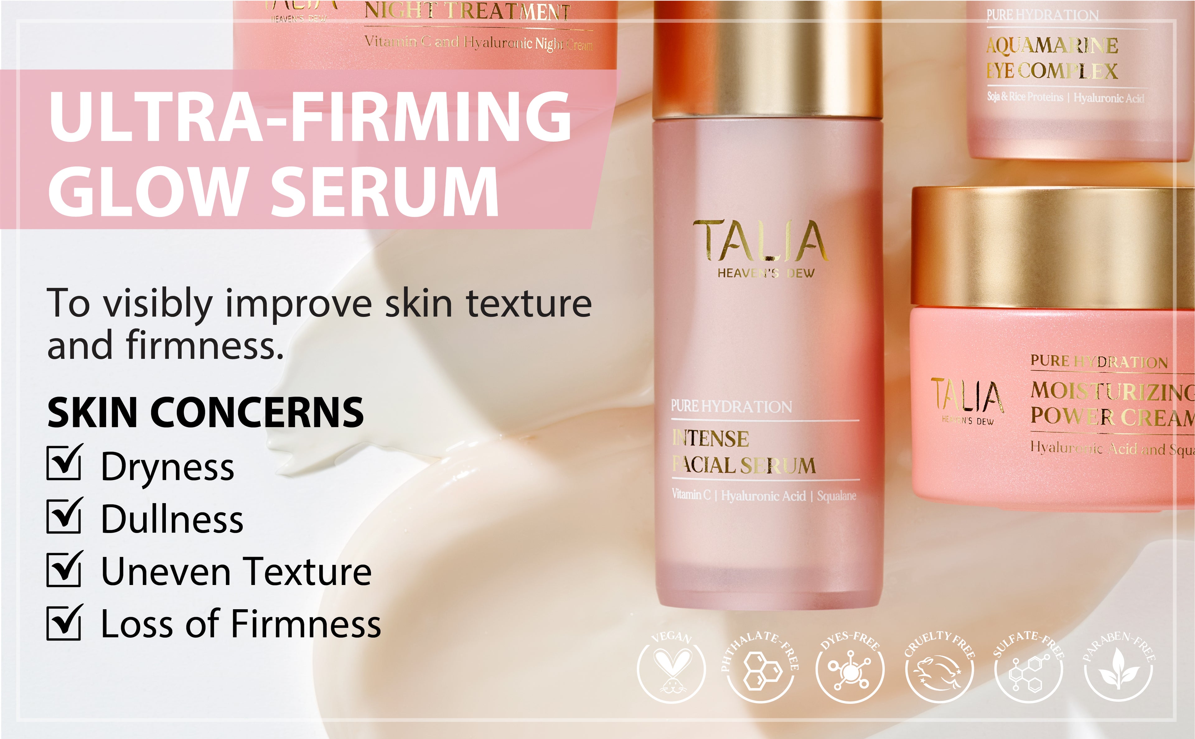 • Talia Hydro Balancer: Ultra Firming & Deep Hydration: Utilizes a synthesis of clinically proven technologies, concentrated botanicals, and a unique composition of antioxidants & minerals.