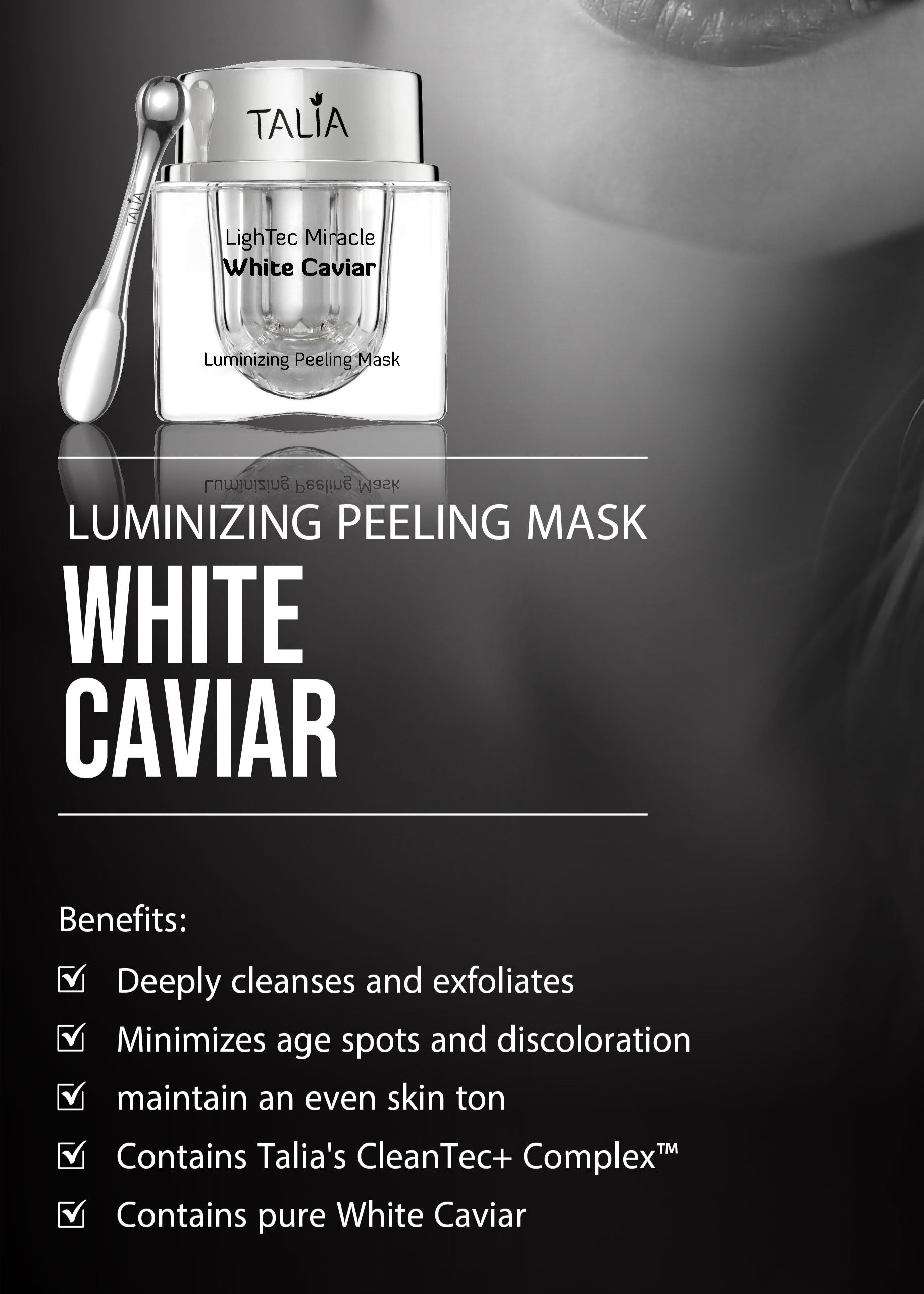 White Caviar Peeling Mask instantly reveals greater clarity and improved skin texture and tone for a more youthful radiance look.