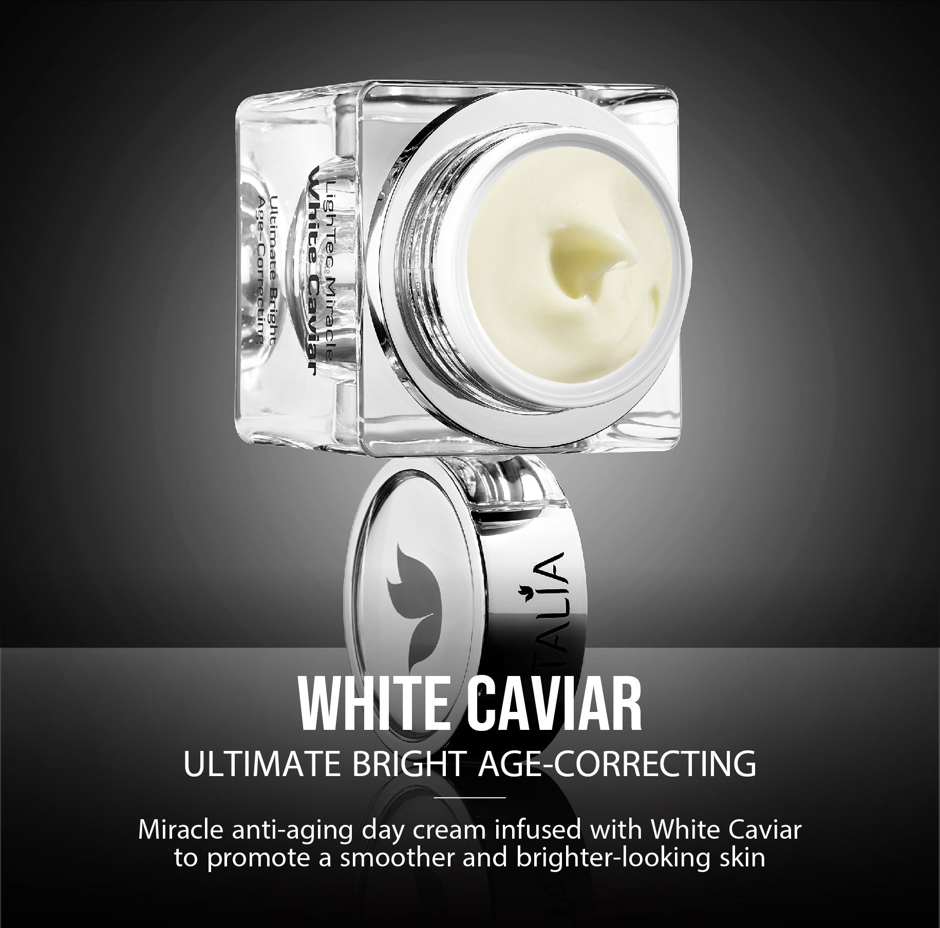 Miracle Anti-Aging, Illuminating Caviar Cream helps you to achieve the luminosity of youthful-appearing, vital skin and glowing appearance with the White Caviar ritual. White Caviar's exceptional moisturizing and anti-aging properties protect skin and contribute to its healthy-looking completion. This exquisite caviar cream creates a miracle blend of clinically tested peptides, brightening botanicals, hyaluronic acid, powerful antioxidants, and minerals, delivering remarkable results for softer, smoother, and brighter-looking skin.